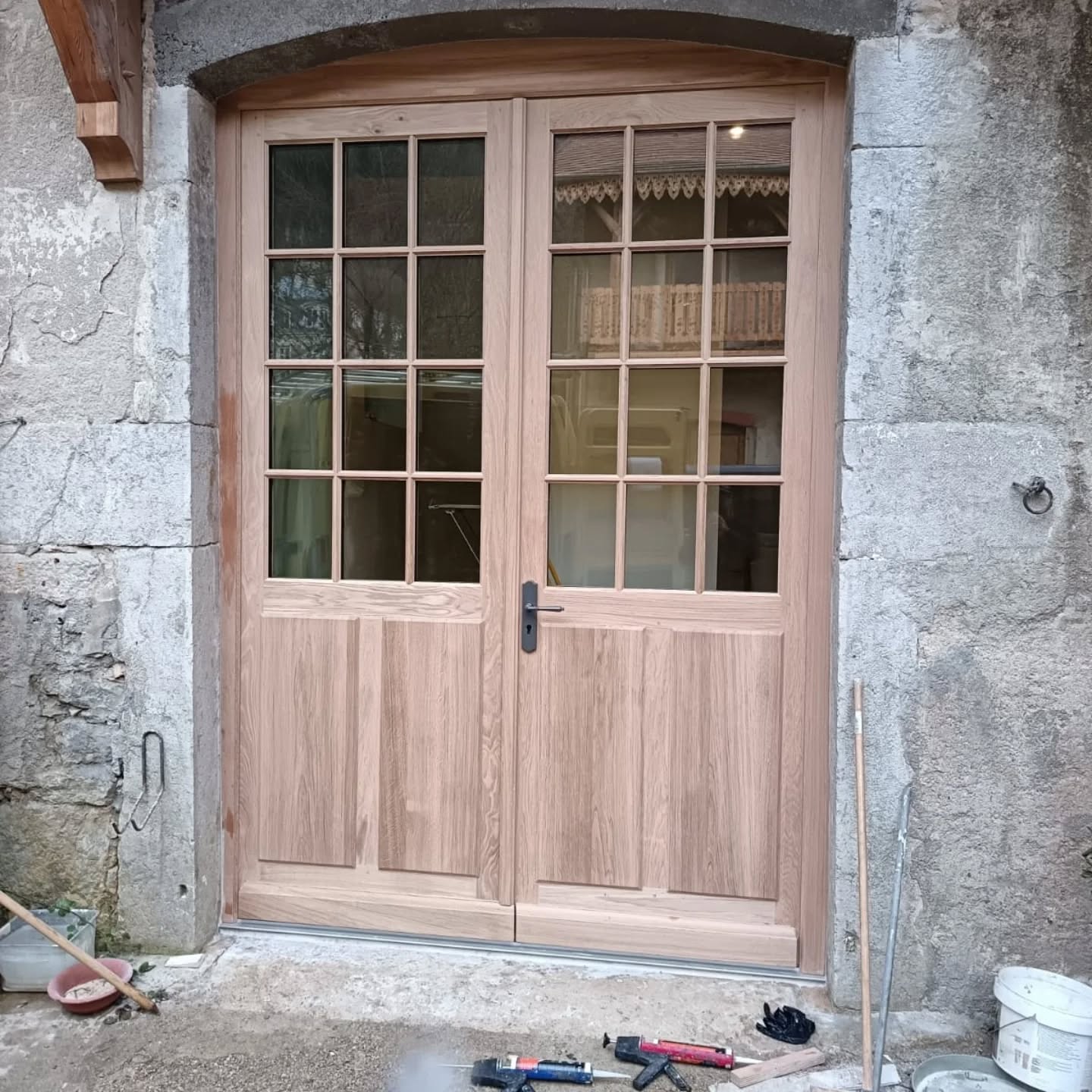 Avec du vitrage phonique ! 150kg le vantail de la grande porte !