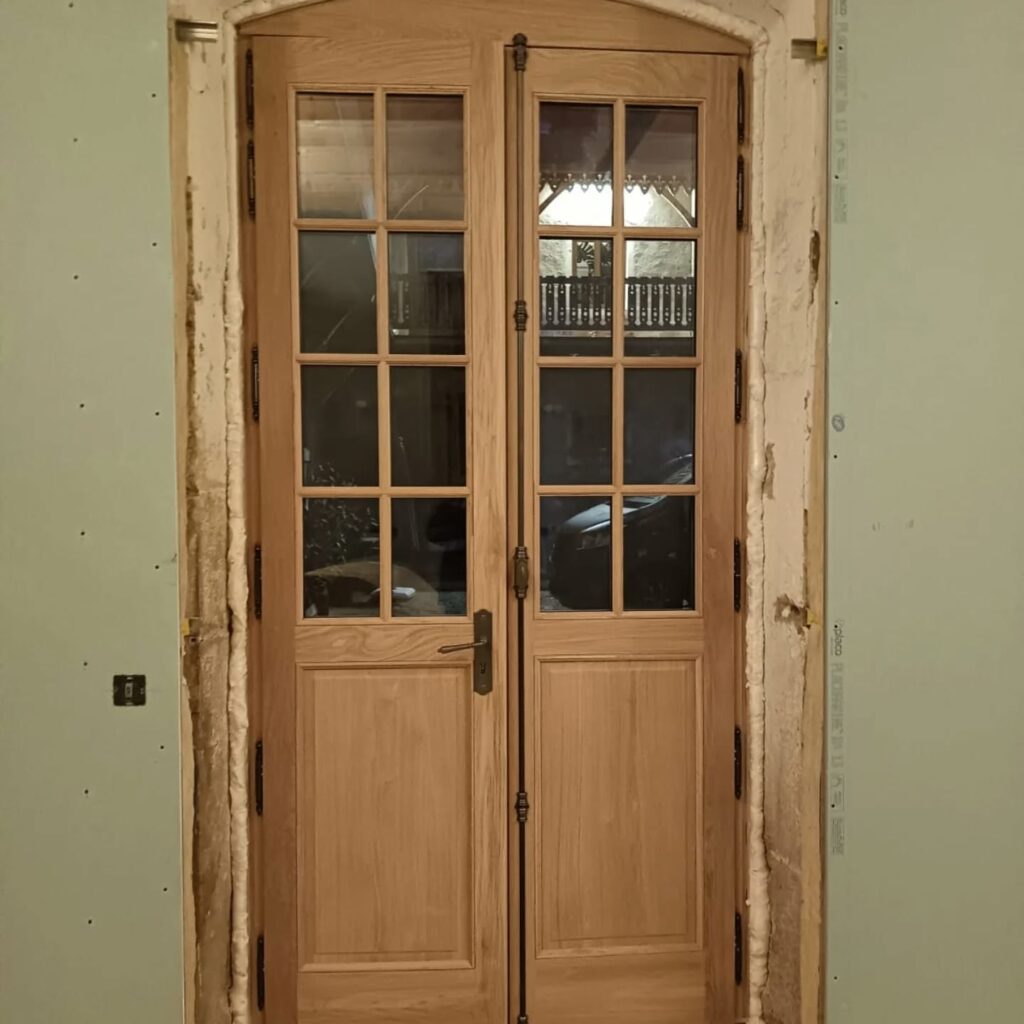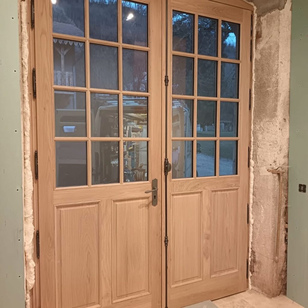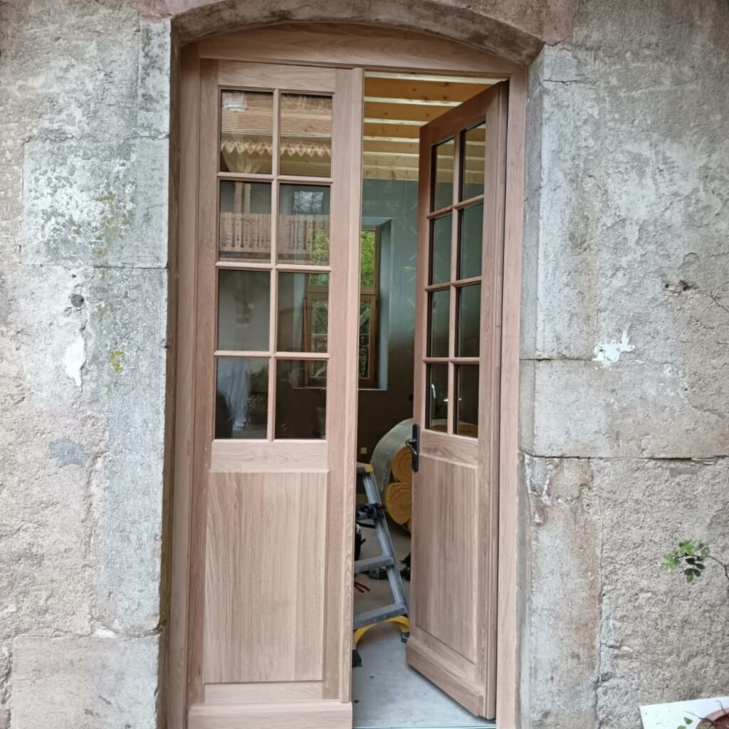 Fabrication et pose de portes d’entrée en chêne massif.